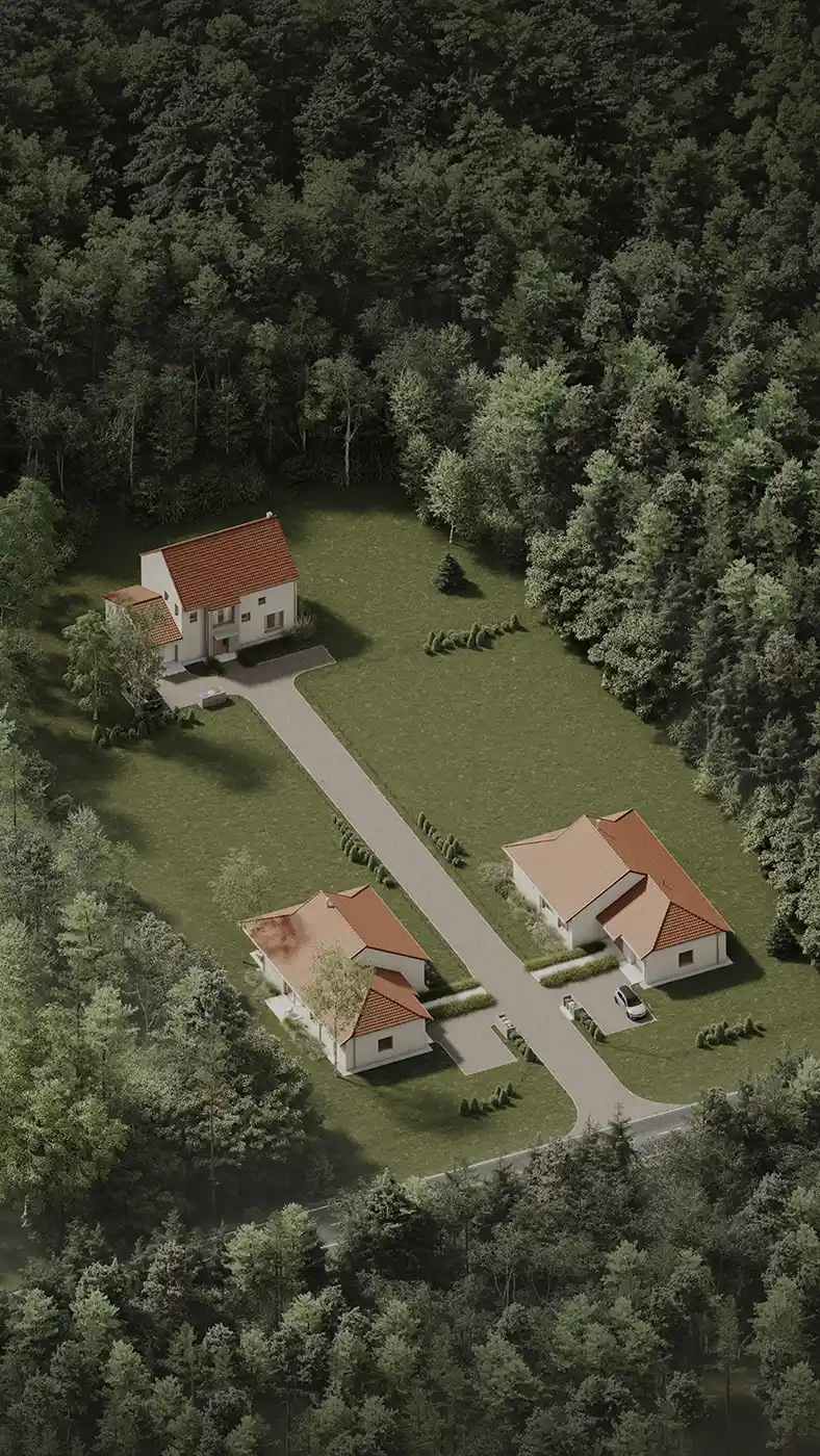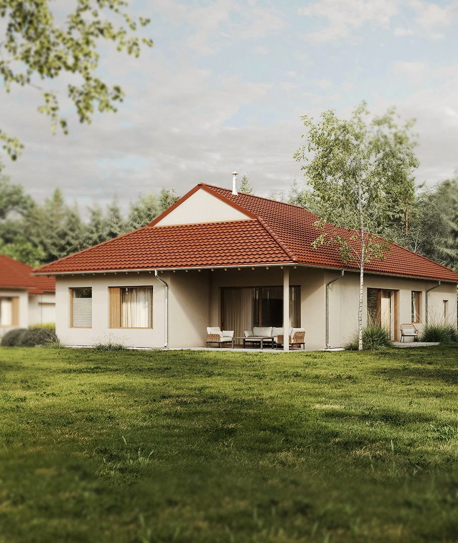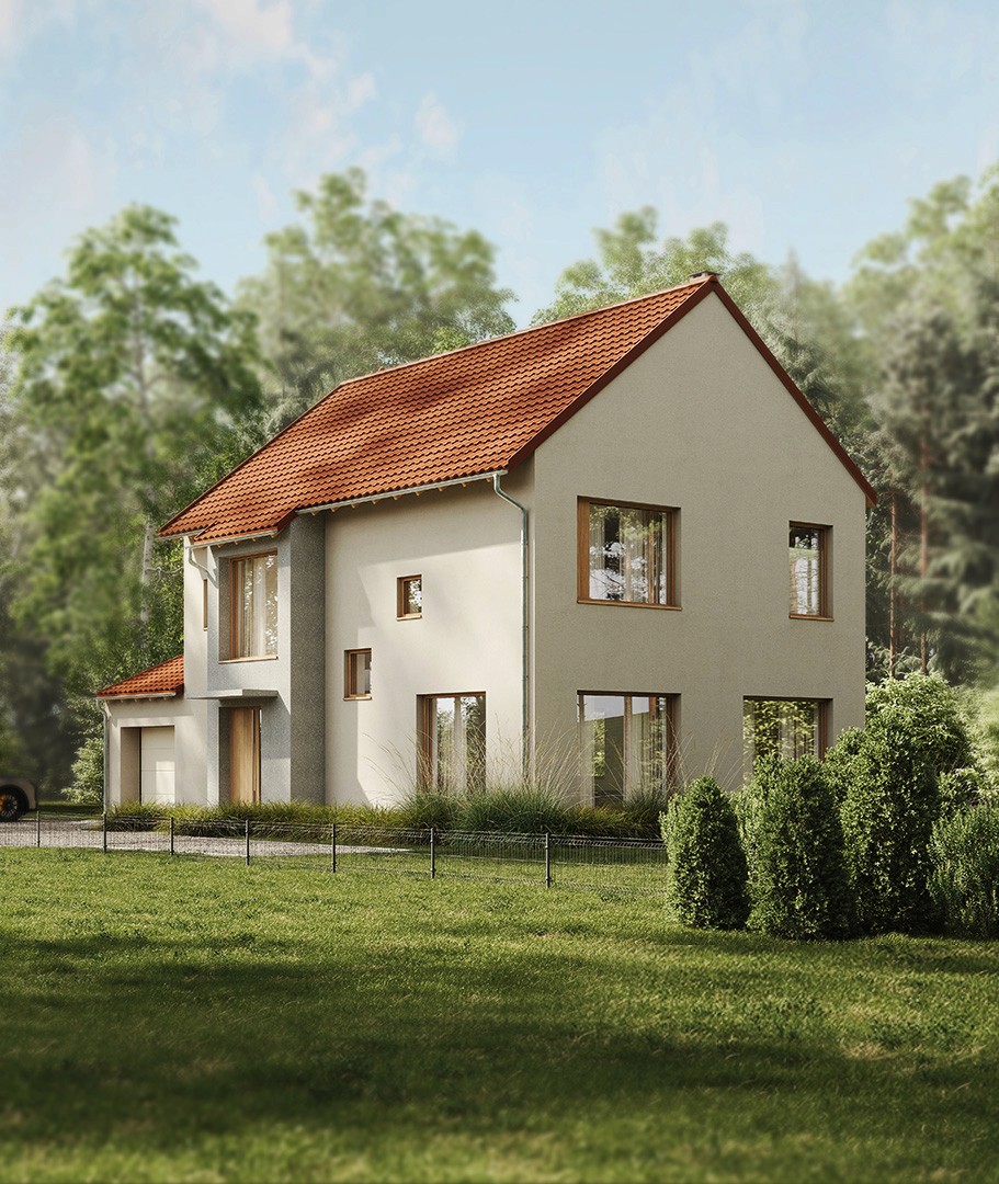 Każdy dom dopasowaliśmy do konkretnej działki. Wykorzystujemy walory otoczenia i naturalne światło. Duże, zielone działki dają wolność niedostępną w mieście. Tutaj architektura współgra z naturą.