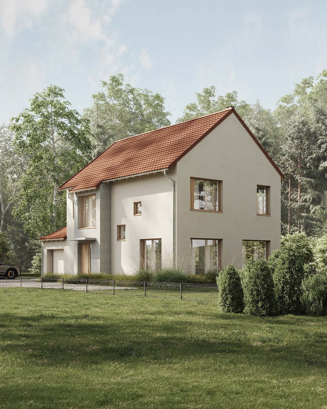 Przedmiotem Umowy Deweloperskiej jest lokal mieszkalny (dom) w tzw. standardzie deweloperskim, którego szczegółowy opis techniczny zawarty jest w Prospekcie Informacyjnym oraz Projekcie Budowlanym. Wszelkie prezentowane na stronie zdjęcia i wizualizacje przedstawiające gotowe, umeblowane i wykończone wnętrza mają charakter wyłącznie inspiracyjny i nie stanowią standardu wydania lokalu.