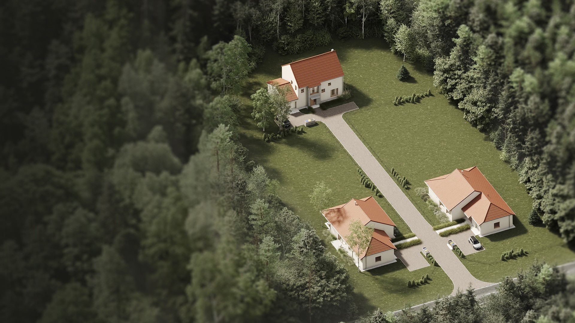 Każdy dom dopasowaliśmy do konkretnej działki. Wykorzystujemy walory otoczenia i naturalne światło. Duże, zielone działki dają wolność niedostępną w mieście. Tutaj architektura współgra z naturą.